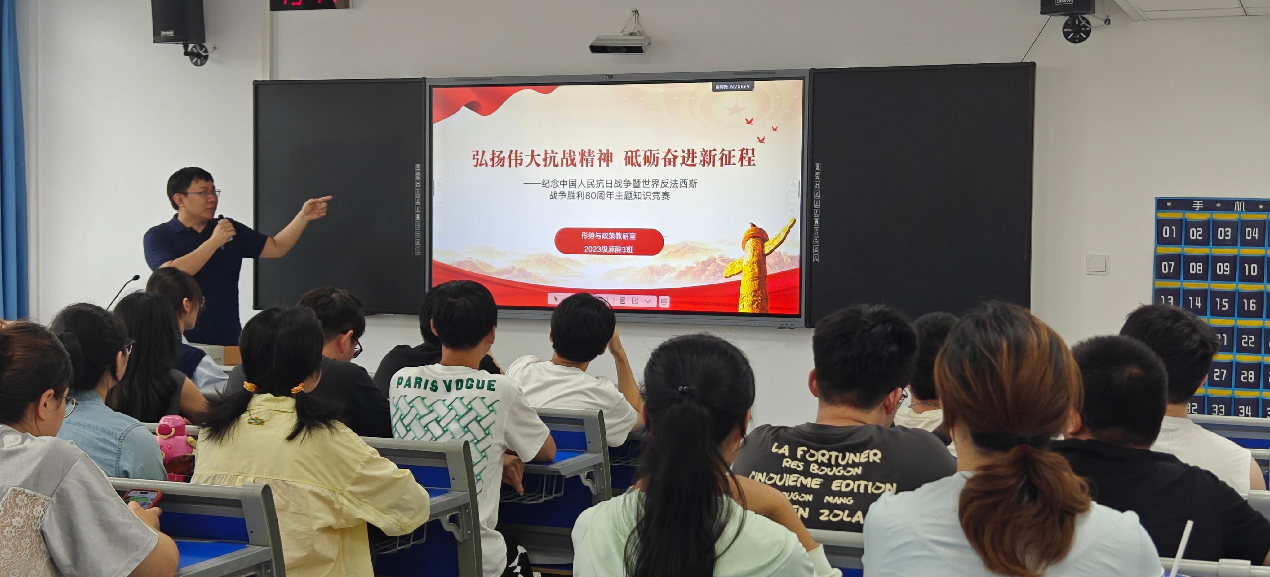 为引导青年学生深刻理解抗日战争的历史意义与时代价值,坚定理想信念,增强历史使命感。9月3日,形势与政策教研室在教学主楼D406教室举办了一场以“弘扬伟大抗战精神 砥砺奋进新征程”为主题的知识竞赛。