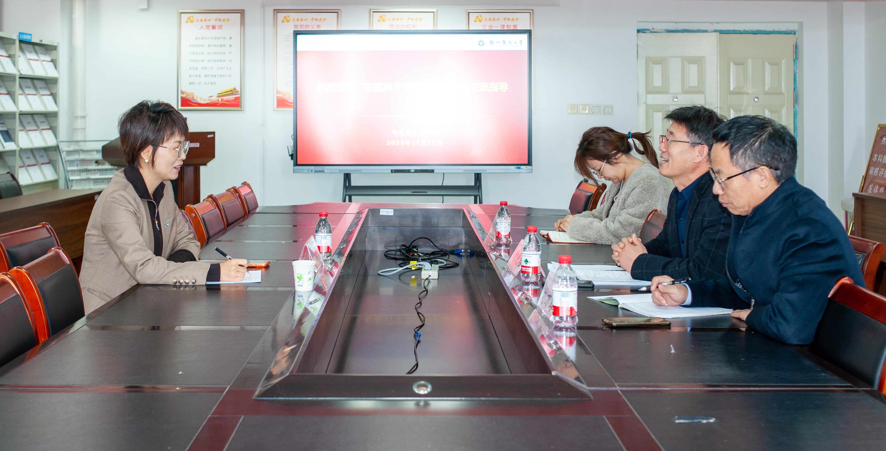 时统君对金卓的到访表示欢迎,并简要介绍了学院的发展历程、发展现状;金卓介绍了广东医科大学马克思主义学院的发展整体情况与发展实际;双方围绕如何实现党建与业务深度融合、思政课程内涵式发展、师资队伍建设、思政课实践教学等主题交流探讨。