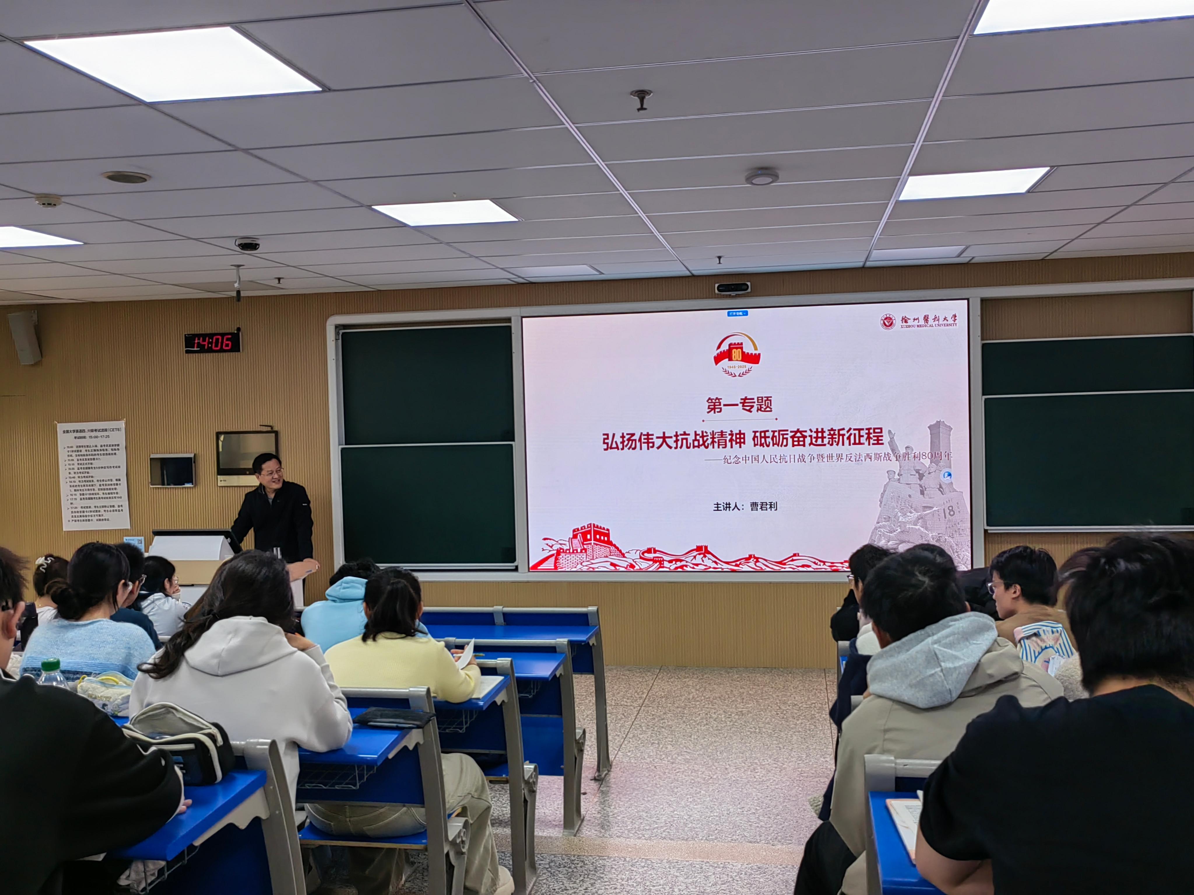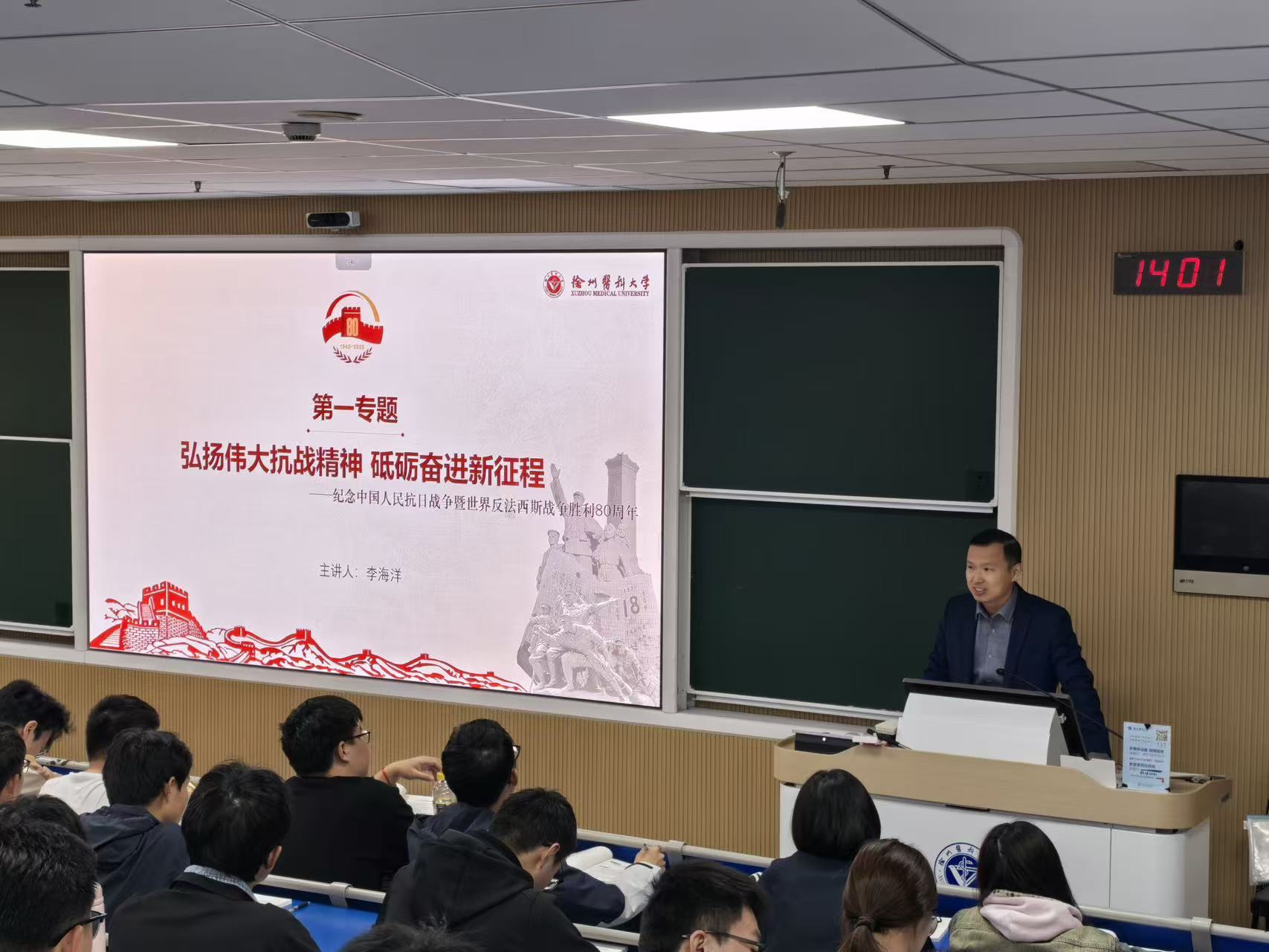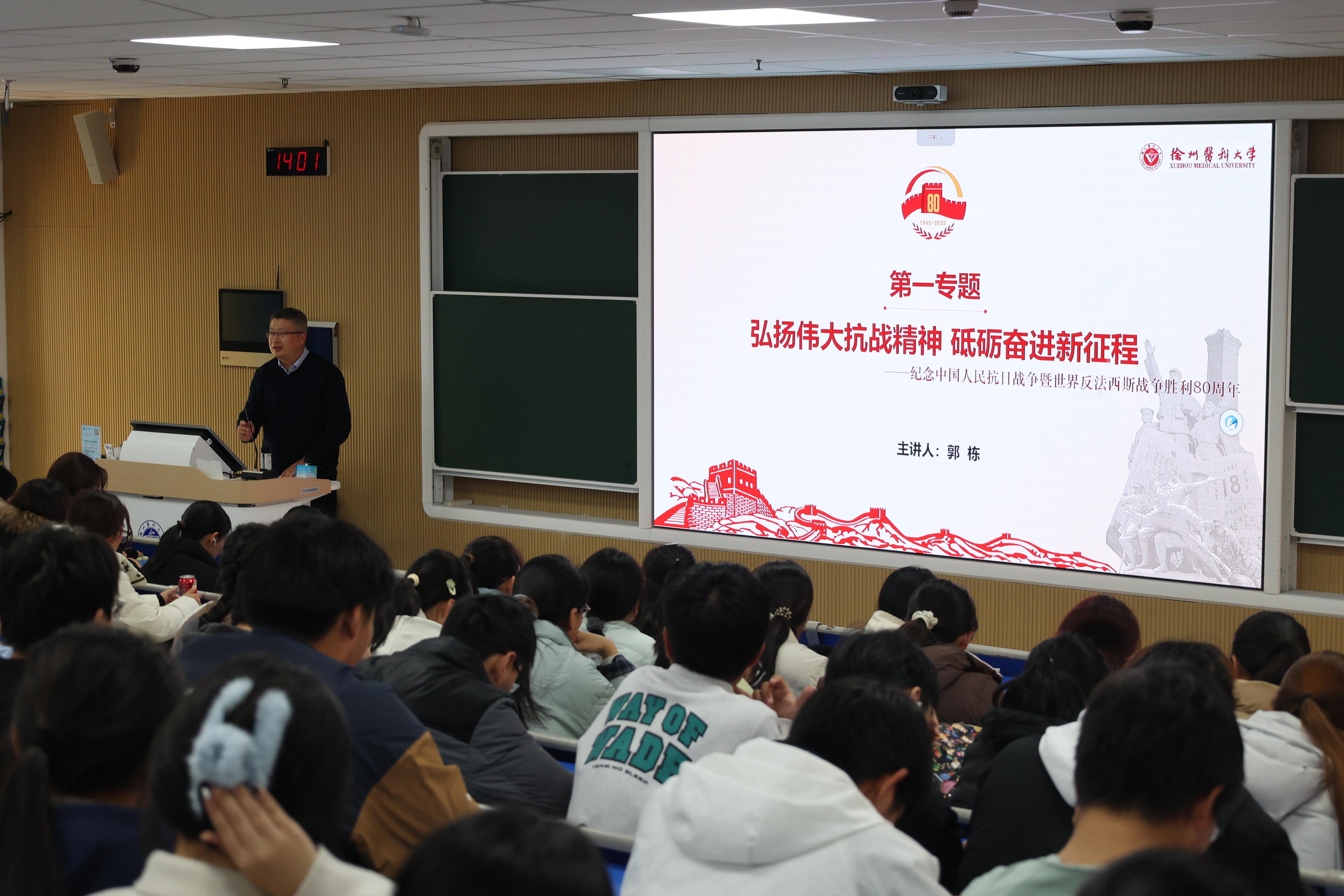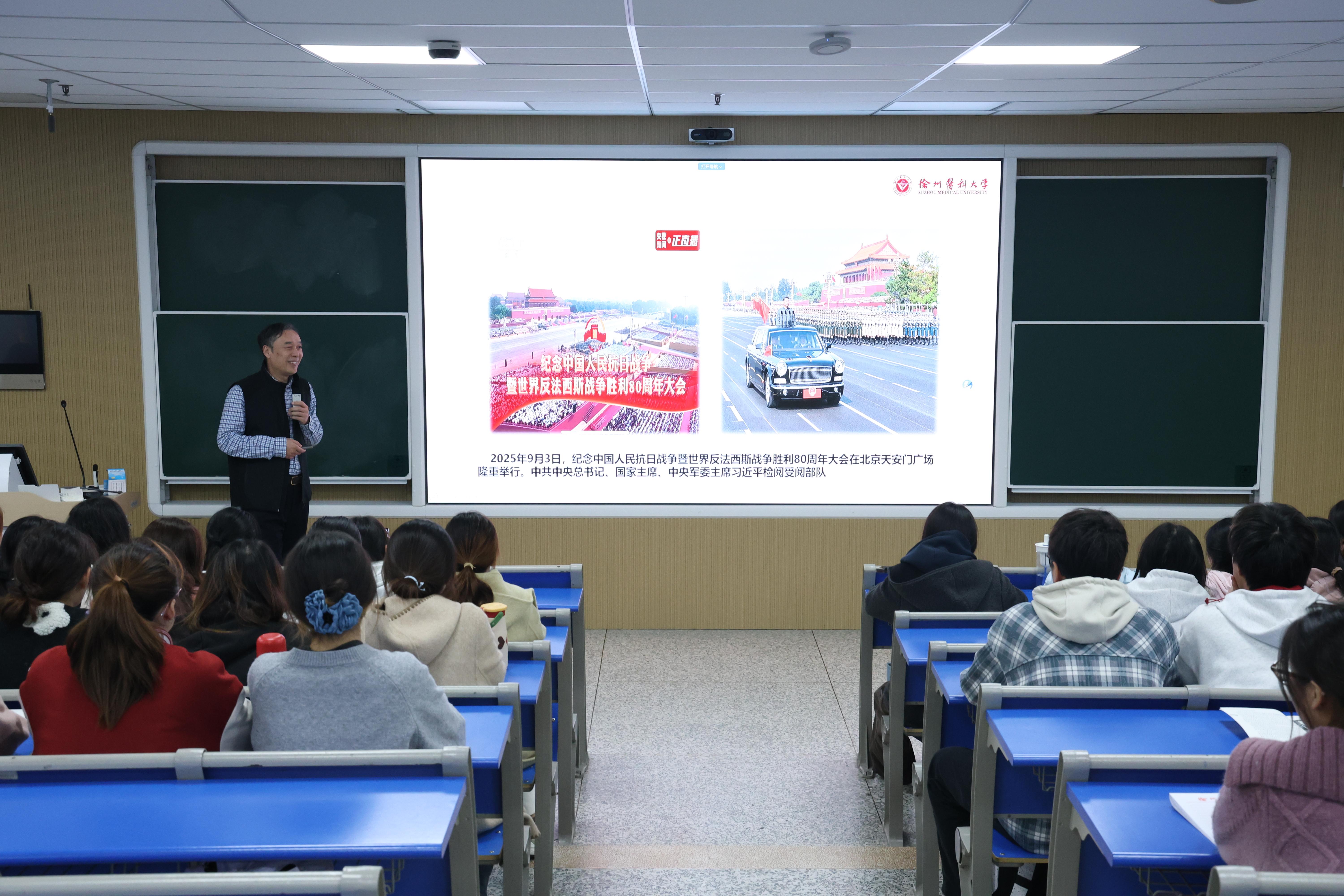 校领导们以“弘扬伟大抗战精神,砥砺奋进新征程”为主题,面向青年学生,结合医学专业特色和不同学科背景开展教学。通过对抗战历史脉络的系统回顾,在深入剖析中国人民抗日战争对世界反法西斯战争胜利作出重大贡献的基础上,帮助同学们深刻认识到,伟大抗战精神是弥足珍贵的精神财富,是凝聚民族复兴伟力的强大动力,激励学生立志把个人所学专业知识转化为守护人民健康、投身强国建设的实际行动。