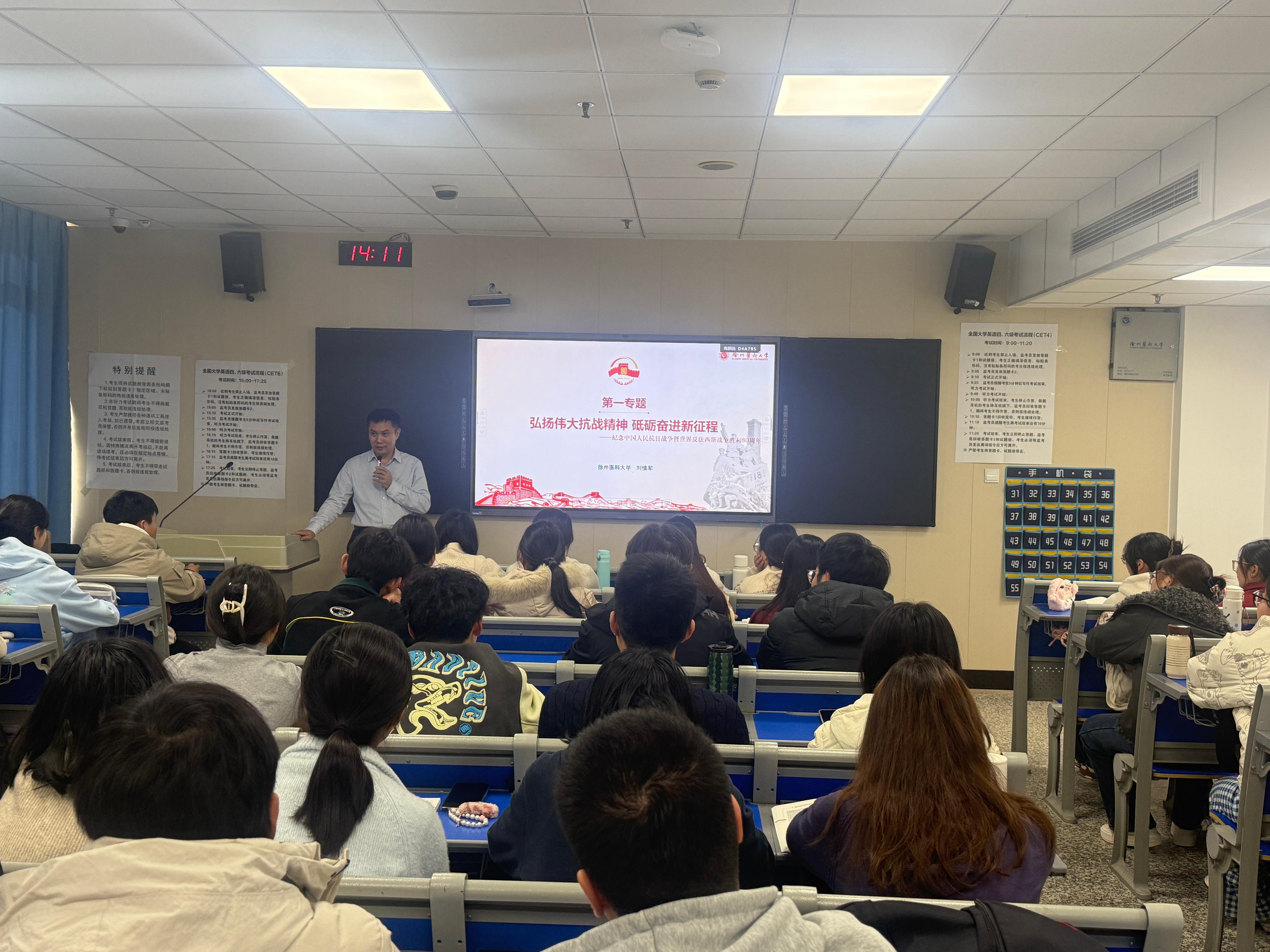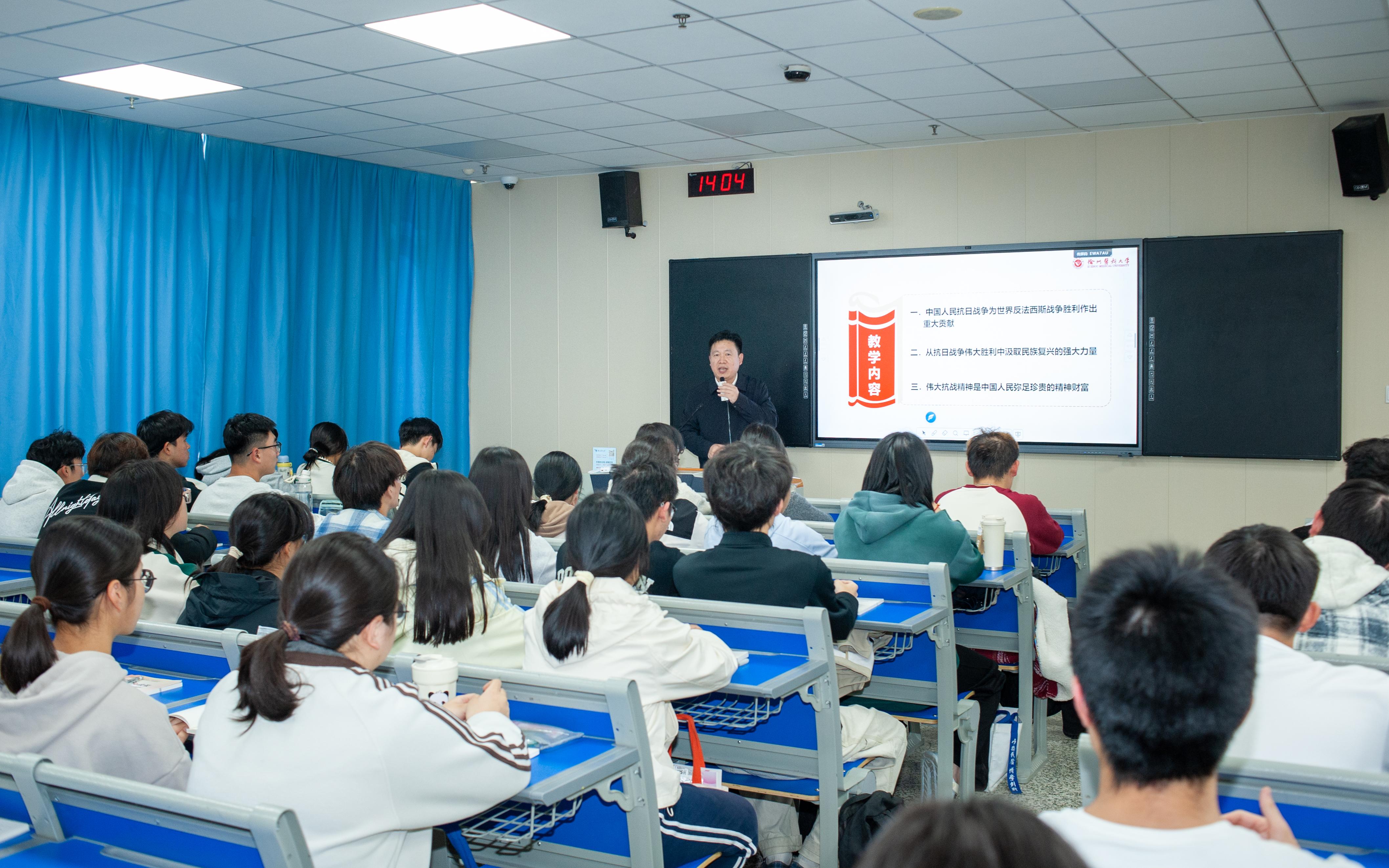 时值习近平总书记在纪念中国人民抗日战争暨世界反法西斯战争胜利80周年大会上发表重要讲话之际,学校党委积极发挥示范作用,校领导带头为广大学生讲授“形势与政策”课,帮助大学生树立正确的抗战史观和英雄史观,激发青年学子的爱党爱国爱校情怀,充分体现出学校对思想政治理论课的高度重视,必将显著加快课程教学改革进程,全面提高教学质量,更加充分地彰显思政课在立德树人中的关键作用。(文/罗昕 杨静 窦珊珊)